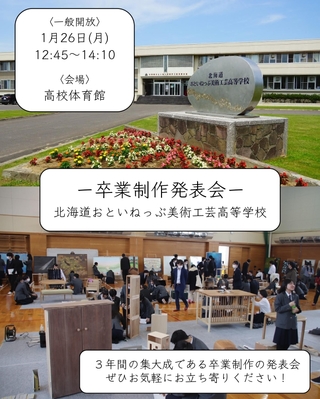 今年度3年生による卒業制作発表会を、1月26日(月) に開催します。📍場所:本校..